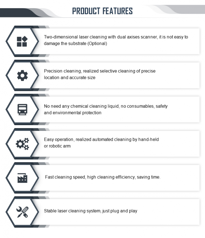 6. 改善された質:レーザーのクリーニングは基質を傷つけないで錆および他の汚染物を取除き、きれいで、滑らかな表面を残す。これは完成品および増加の顧客満足の質を改善できる。